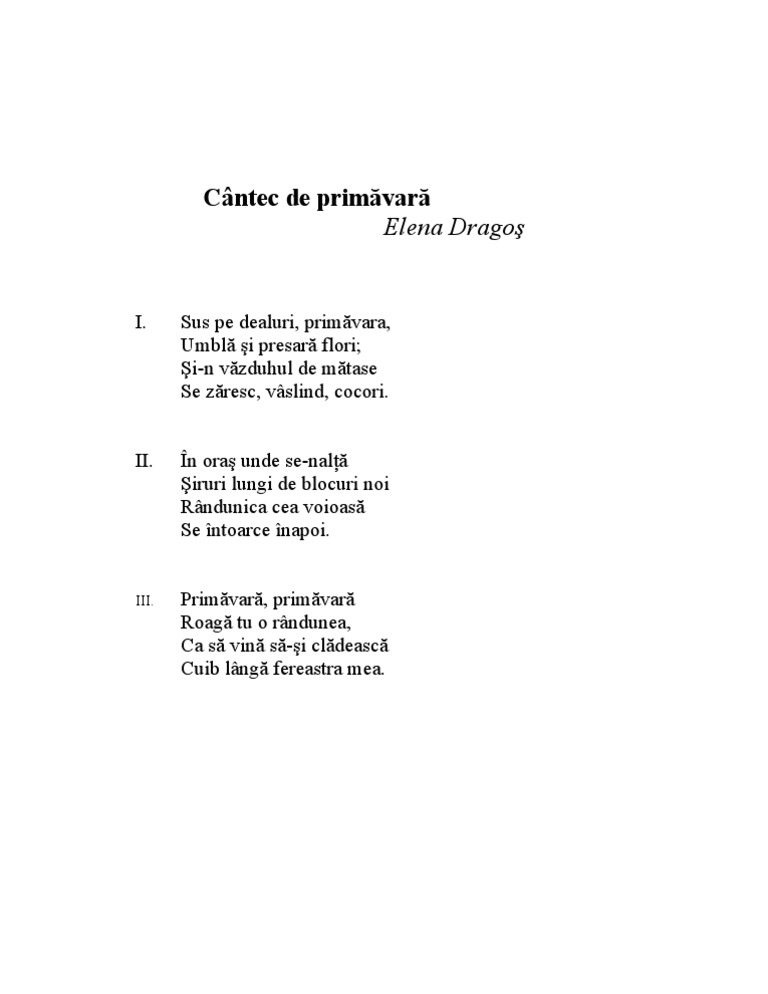 Poezie Cantec De Primavara